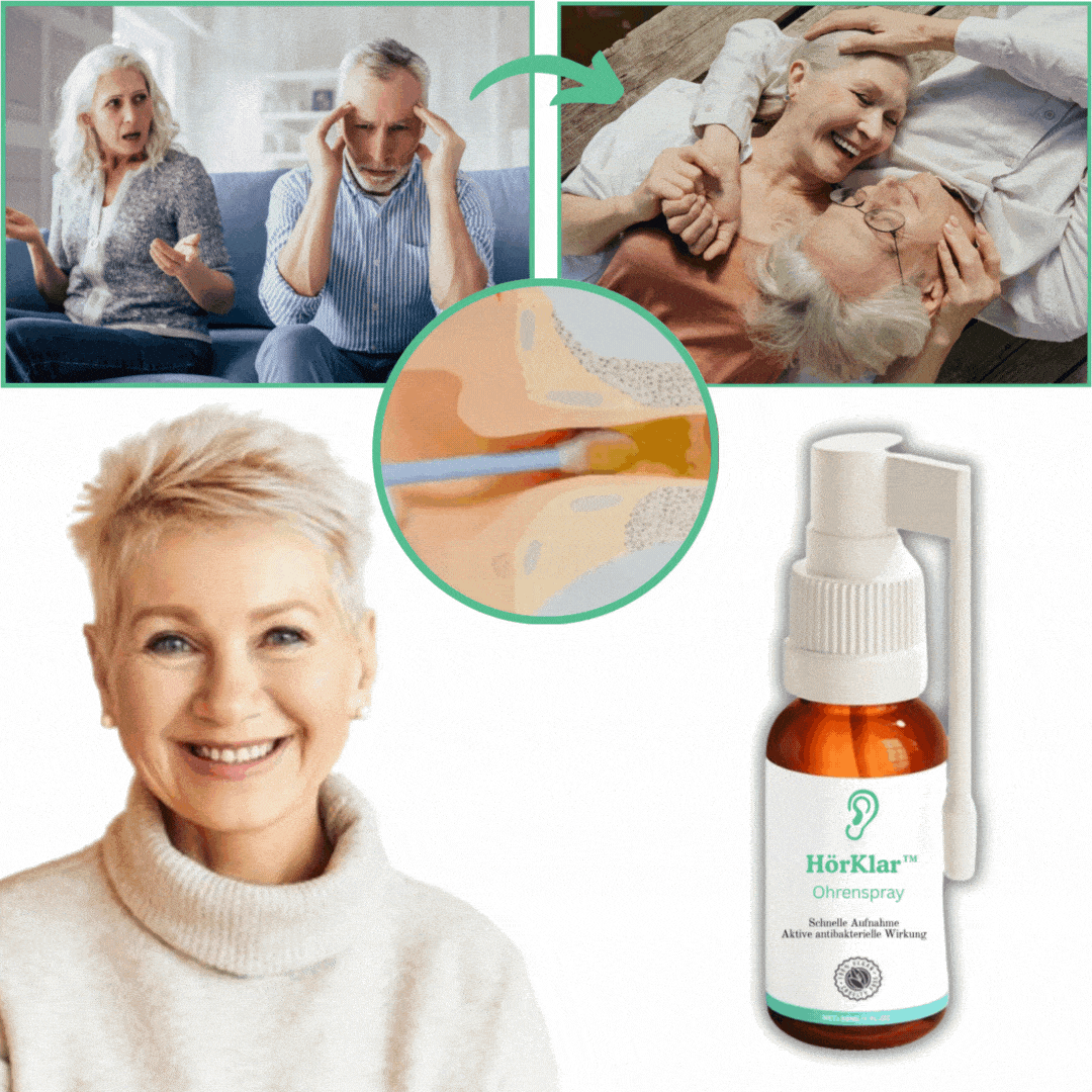 Kennen Sie dieses Gefühl, als hätten Sie Watte im Ohr, begleitet von Druck, Brummen oder Reizung? HörKlar™ wurde dafür entwickelt, die Ohren sanft zu unterstützen – mit einer praktischen Anwendung, die nur wenige Sekunden dauert. Ein Sprühstoß pro Ohr kann bereits spürbar entlasten.
